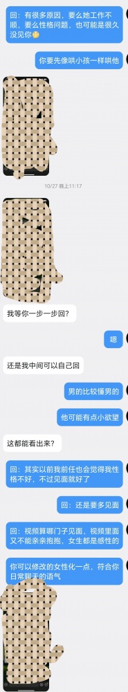 这次发,把一些女生的性格等非相关信息去掉,保护别人隐私。不过在帮忙引导的过程中,这些信息都是必要的。luanlun的对象不能太强势,生活要有很多交集