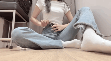 到了试衣间妻子开始脱掉牛仔裤